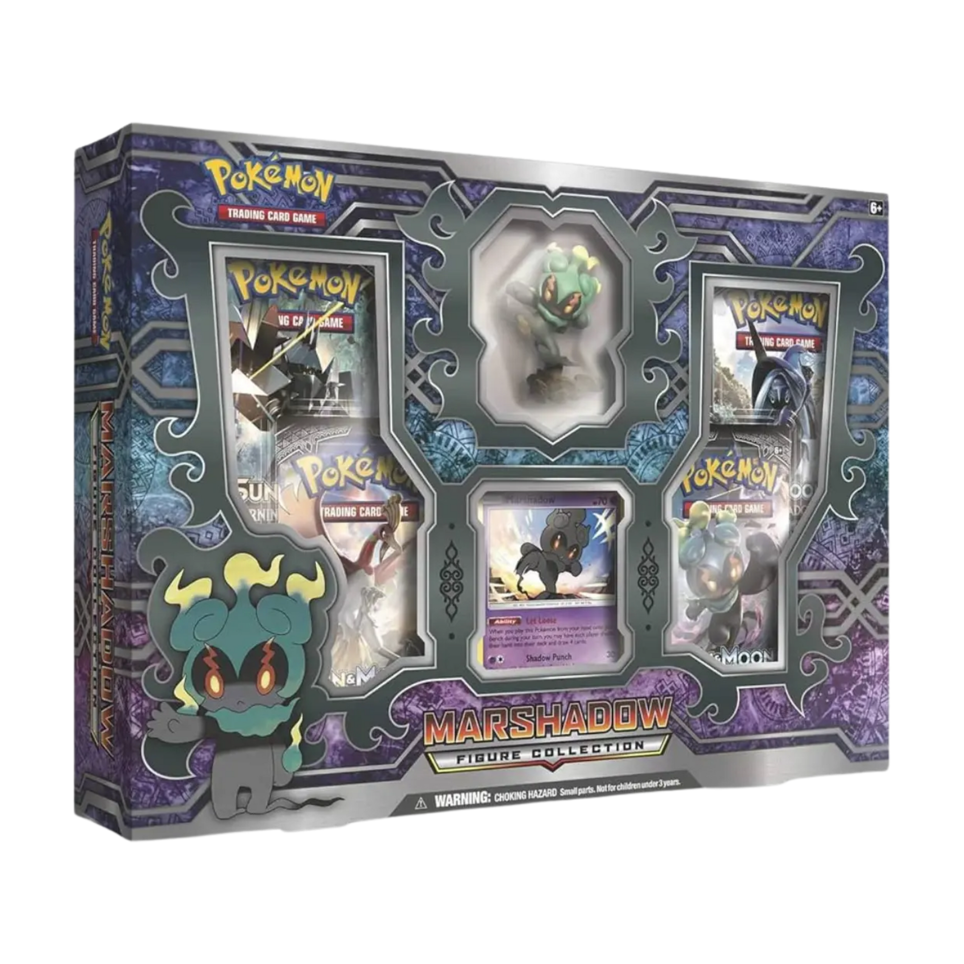 The Pokémon TCG: Marshadow Figure Collection is a sealed and authentic collector's box that brings the mythical Marshadow into your collection with both power and style.